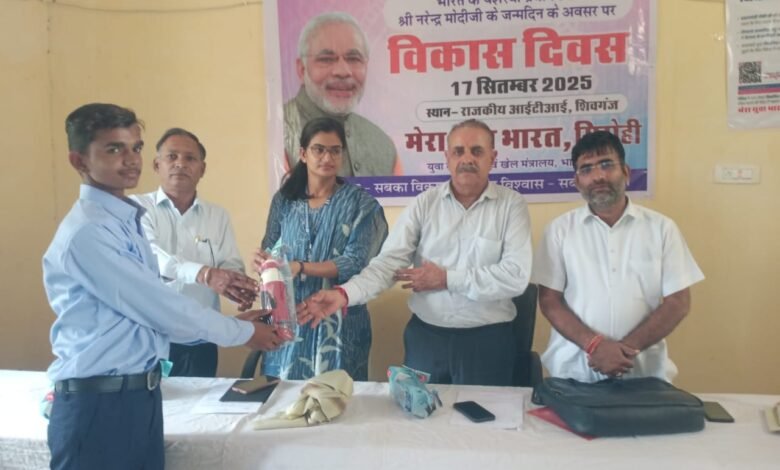 आज दिनोंक- 17.09.2025 को माननीय प्रधानमंत्री श्रीमान नरेन्द्र मोदी जी के जन्म दिवस एवं विश्वकर्मा जयन्ति के उपलक्ष में मेरा युवा भारत, सिरोही एवं राजकीय औद्योगिक प्रशिक्षण संस्थान, शिवगंज के तत्वाधान में एक दिवसीय कार्यशाला का आयोजन राजकीय औद्योगिक प्रशिक्षण संस्थान, शिवगंज में किया गया।