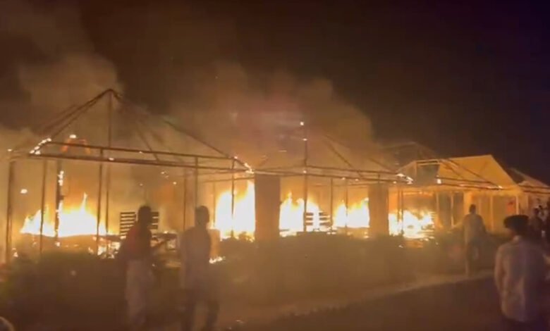 जैसलमेर: थार मरुस्थल की सुनहरी रेत पर बसे पर्यटन स्थल सम सैंड ड्यून्स में गुरुवार को एक रिसॉर्ट में भीषण आग लग गई. इससे आठ टेंट जलकर राख हो गए. सम थानाधिकारी बगडू राम ने बताया कि लखमणा रोड स्थित जैन टेंट एम्पायर रिसॉर्ट में अचानक आग भड़क उठी, जिसने कुछ ही समय में विकराल रूप ले लिया. आग इतनी तेज थी कि देखते ही देखते रिसॉर्ट के आठ टेंट पूरी तरह जलकर राख हो गए. हालांकि, राहत की बात यह रही कि इस हादसे में किसी प्रकार की जनहानि की सूचना नहीं मिली है