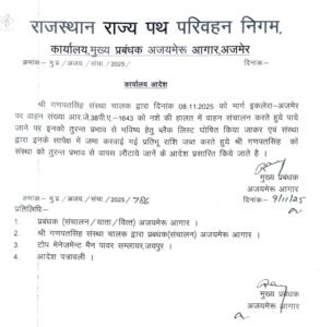 राजस्थान रोडवेज के एक ड्राइवर के खिलाफ नशा करके बस चलाने के बाद कार्रवाई की गई है. राज्य पथ परिवहन निगम, अजमेरु आगार द्वारा जारी एक आदेश में बताया गया है कि चालक गणपत सिंह को नशे की हालत में बस चलाते हुए पाया गया. इसके बाद उसे तत्काल प्रभाव से सेवा से हटाते हुए ब्लैकलिस्ट कर दिया गया है. आदेश में स्पष्ट लिखा गया है कि चालक गणपत सिंह 8 नवंबर को शराब के नशे में अजमेर-इकलेरा मार्ग पर रोडवेज बस चला रहा था